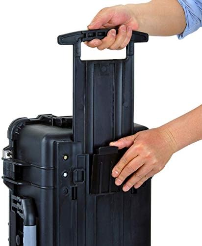 MEIJIA All Weather Rolling Waterproof Protective Case, Hard Camera Case,Dry Case with Retractable Pull Handle and Wheels,Foam Inserted, Elegant Black,22 x13.81x9inches
